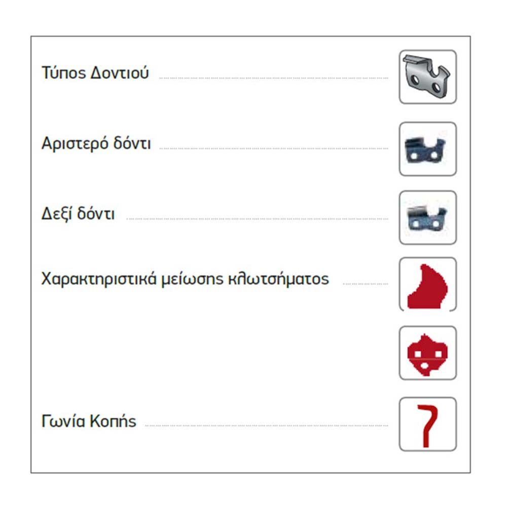 - Τα δόντια κοπής "semi-chisel" είναι χαμηλών κραδασμών και παρέχουν μεγάλη ταχύτητα κοπής ενώ ταυτόχρονα παραμένουν εύκολα στο τρόχισμα.