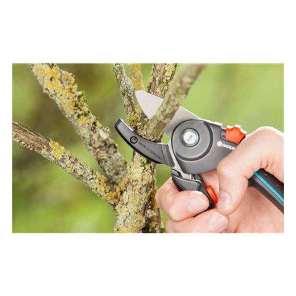 Η άνω λεπίδα ακριβείας έρχεται σε επαφή με μια επίπεδη πλαστική επιφάνεια, τον λεγόμενο άκμονα. Λόγω της βέλτιστης μεταβίβασης της δύναμης, το ακμονοειδές Κλαδευτήρι είναι κατάλληλο για την κοπή ξερών μικρών και μεγαλύτερων κλαδιών. - Τα GARDENA προϊόντα κατασκευάζονται στη Γερμανία και είναι γνωστά για τις επιδόσεις τους, την αξιοπιστία τους και τις συνεχείς καινοτομίες τους.